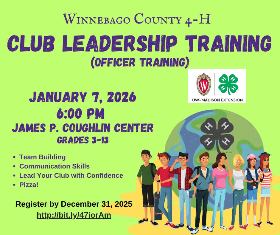We encourage ALL 4-H youth club officers / leadership groups to attend!