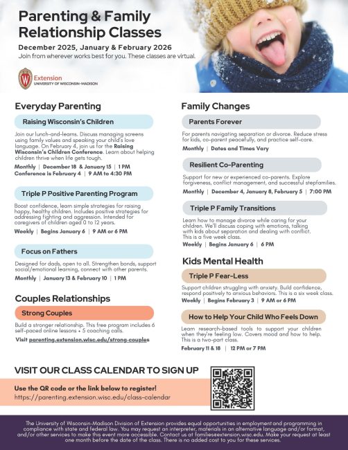 UW-Madison Division of Extension offers research-based information about parenting and relationships for families and the professionals who serve them.